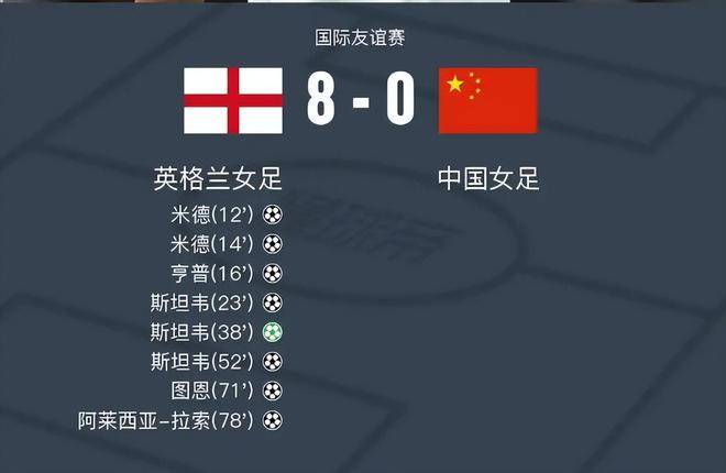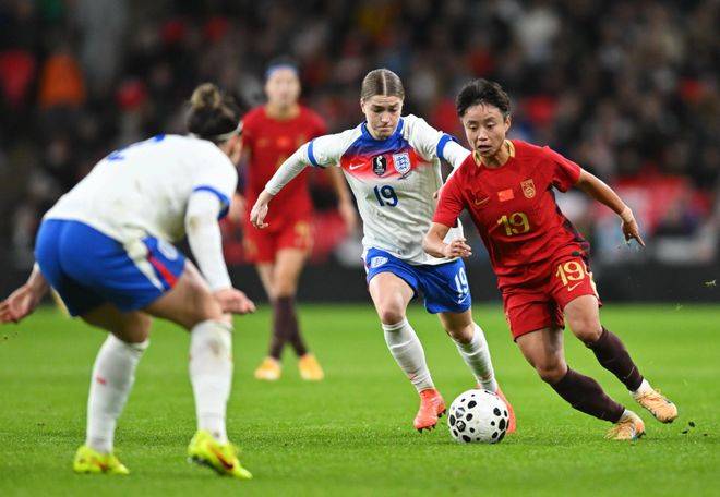 然而,在2025年11月30日凌晨,中国女足与英格兰女足的这场国际友谊赛,充分体现了两队之间的实力差距。比赛刚开始不久,英格兰女足便占据了场上的主动,第12分钟,布龙泽助攻米德破门,紧接着仅过两分钟,图恩又为米德送出助攻,米德梅开二度,将比分扩大至2-0。第16分钟,亨普在门前抢点推射破门,英格兰队短短四分钟内连进三球,彻底打乱了中国女足的节奏。