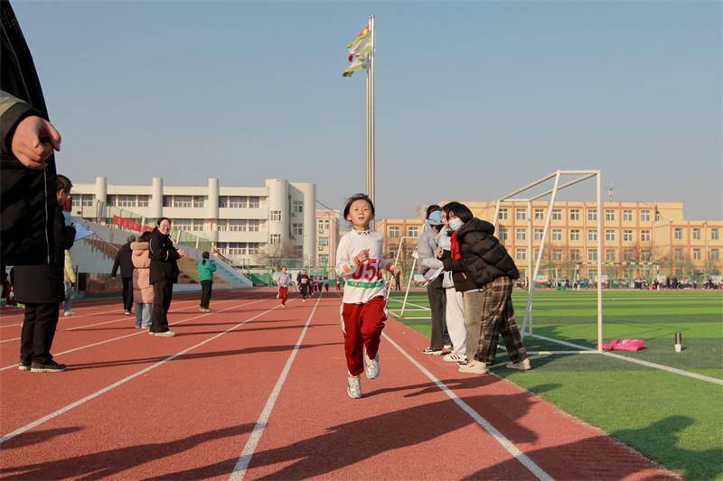 张志永校长为比赛鸣响第一枪,发令声划破晴空,参赛选手如离弦之箭,奋力冲出起跑线,一场速度与耐力、意志与激情的较量热烈展开。运动员们不畏冬寒,顽强拼搏,尽显昂扬斗志与青春活力;跑道外,师生组成的拉拉队呐喊助威声此起彼伏,汇成一股驱散寒意的暖流,点燃了整个校园的热情。当最后一名选手喘着粗气冲过终点线时,看台上响起经久不息的掌声。这或许就是体育教育的魅力——它教会孩子们如何在逆境中寻找力量,在汗水中收获成长。