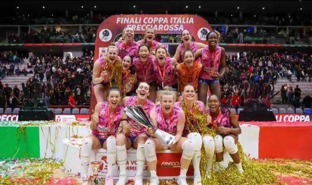 这场胜利对于科内利亚诺队而言意义非凡。这不仅是球队历史上收获的第8座意大利杯冠军奖杯,更意味着他们实现了该项赛事的惊人七连冠,彰显了这支队伍在意大利排坛的绝对统治力。对于朱婷个人来说,这座冠军奖杯同样沉甸甸。这是她在2025-2026赛季收获的第一个冠军头衔,也是她职业生涯中斩获的第23座冠军奖杯。这一成就进一步巩固了她在球队中的核心地位,也证明了她在经历了伤病和恢复期后,依然保持着世界最顶级的竞技状态。