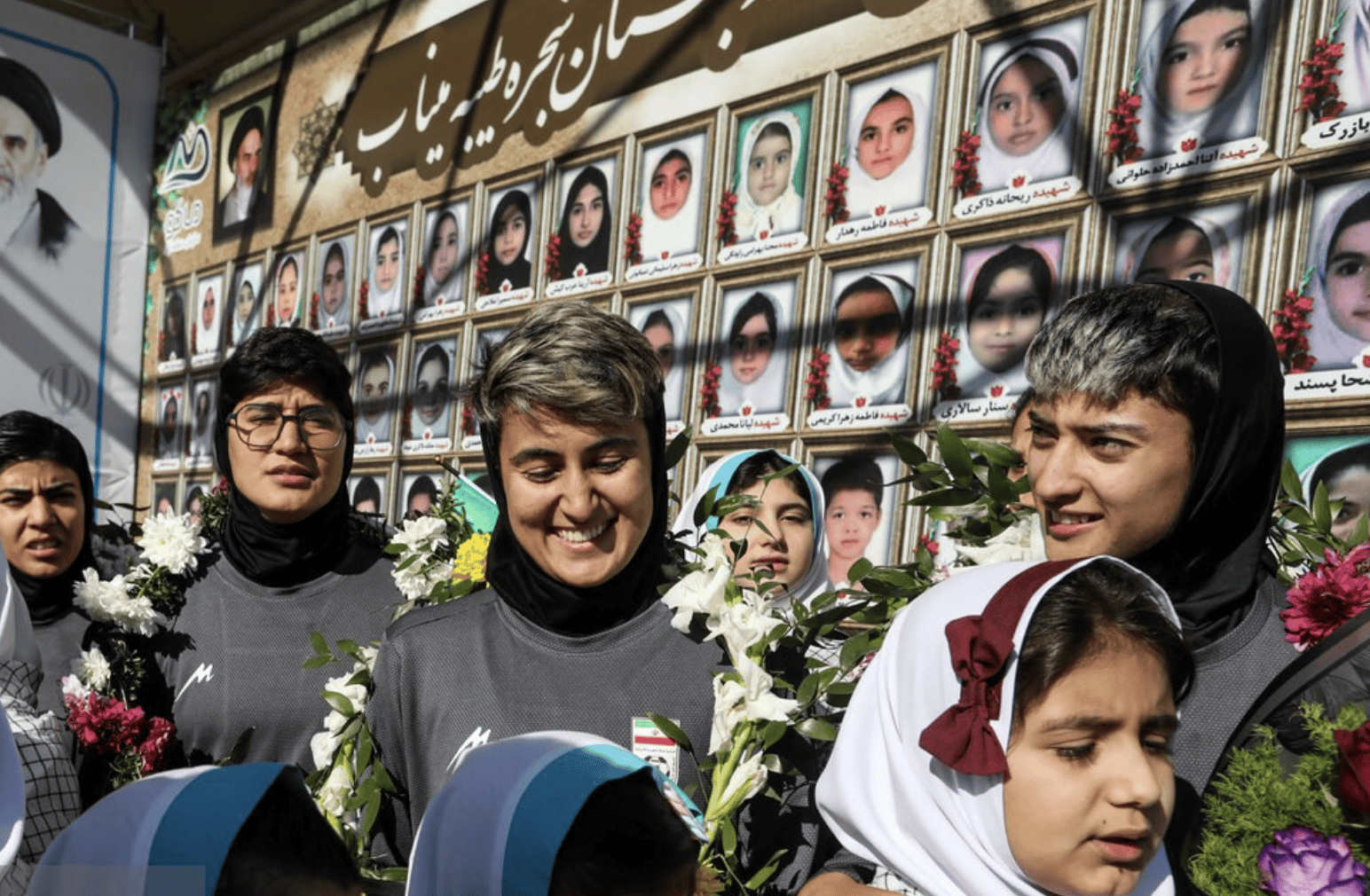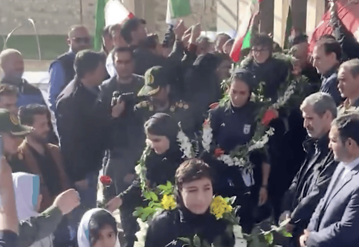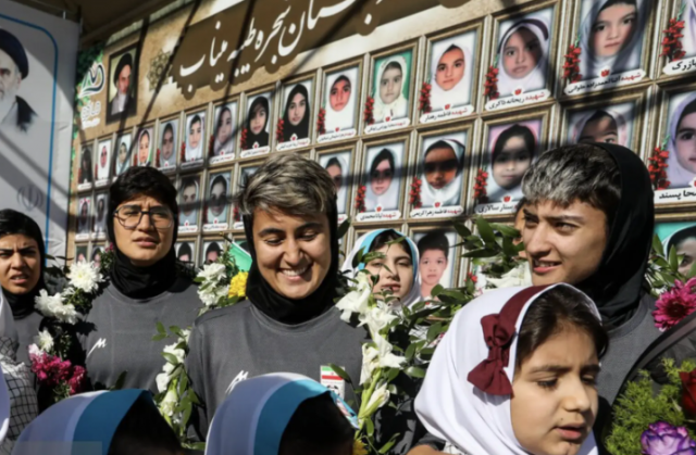 当伊朗女足昨日抵达国内后,伊朗方面组织了盛大的欢迎仪式。现场,有很多民众高举国旗。在音乐声中,伊朗女足成员走下大巴车,并接受孩子们送的花环。民众纷纷为她们鼓掌,将她们视为英雄。