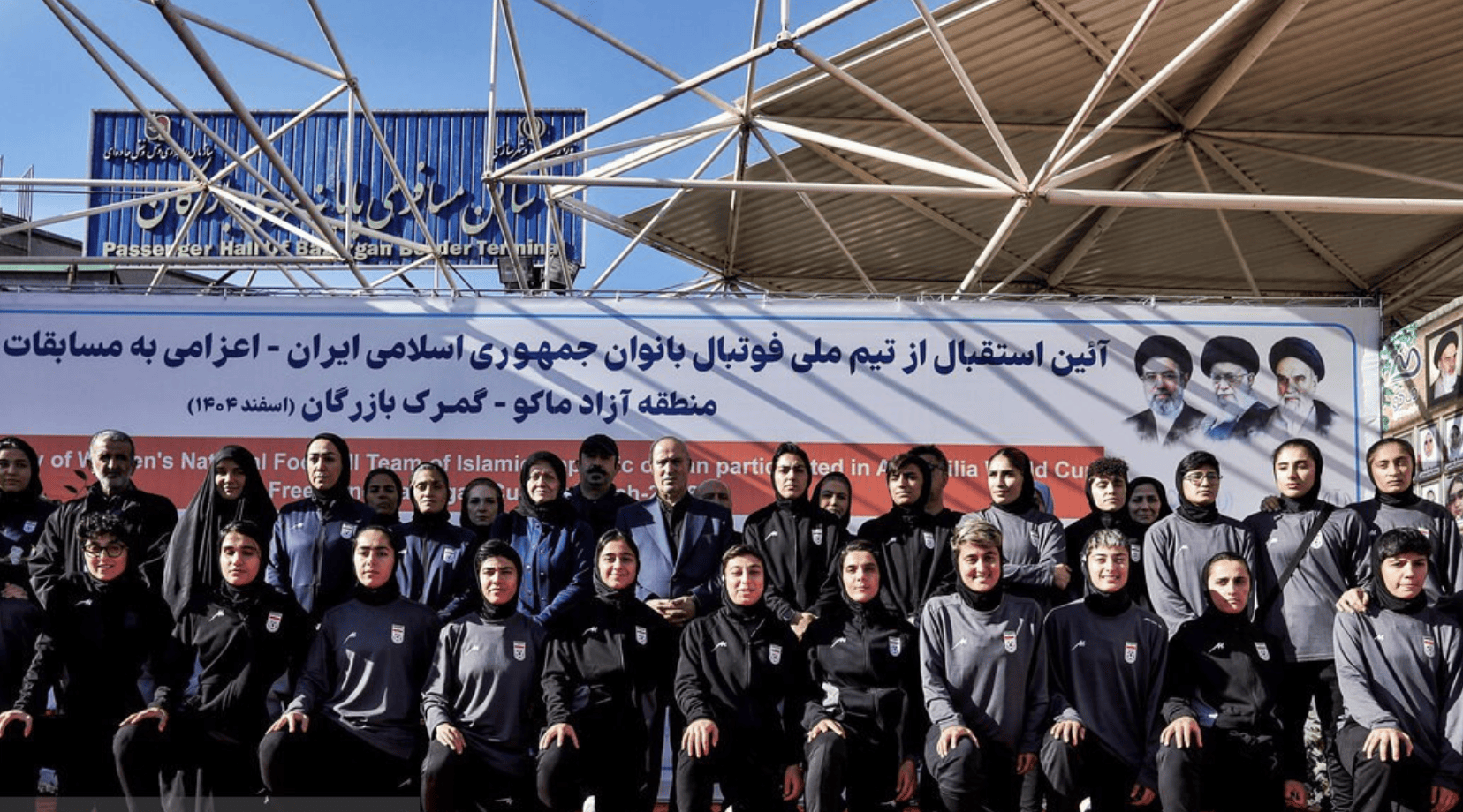 随后,伊朗女足集体亮相,与官员们合影。合影的时候,伊朗女足球员普遍面带笑容。看样子,她们对回家后的待遇感到满意。