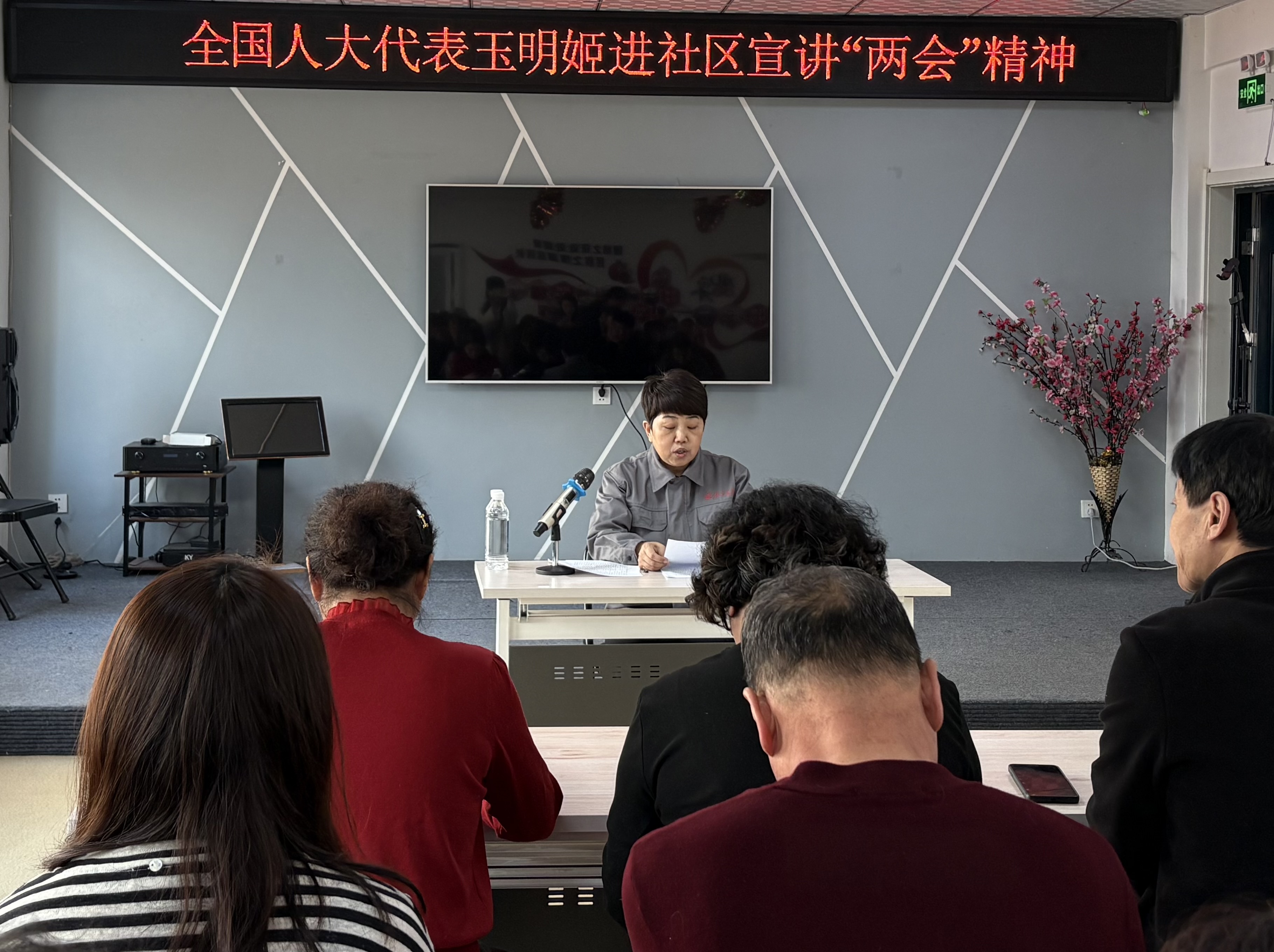 “十四届全国人大四次会议于3月5日至12日在北京胜利召开,这是一次凝心聚力、真抓实干、团结奋进的大会……”在江北社区活动室,玉明姬与社区居民围坐在一起,用通俗易懂的话语宣讲全国两会精神。宣讲中,她重点分享了习近平总书记在参加江苏代表团审议时的重要讲话精神,“习近平总书记指出,‘中国式现代化是全体人民共同富裕的现代化’,要‘积极主动解答如何实现高质量充分就业、如何增加城乡居民收入、如何进一步提升基本公共服务和社会保障水平等课题’——这些话,句句都说到咱们老百姓的心坎儿里。”朴实的话语直抵人心,现场居民听得认真、频频点头。