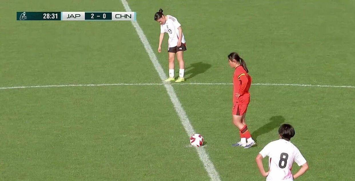 比赛的僵局在开场仅仅12分钟便被打破。中国队后卫童苏欣在禁区内不慎放倒了日本队的林祐未,裁判毫不犹豫地指向点球点。林祐未亲自主罚,尽管中国队门将杨雨婷奋力扑救,甚至触碰到了皮球,但球最终还是沿着门柱内侧弹进了网窝,0比1的比分,让中国队早早陷入被动。