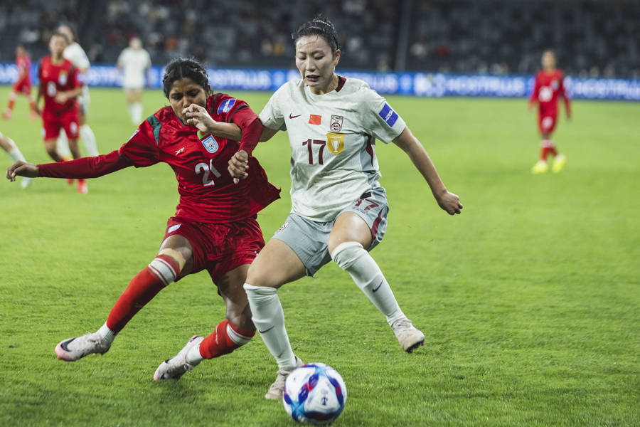 谢宗梅(右)在3月的女足亚洲杯中曾代表成年国家队出场