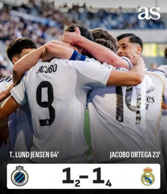 比赛第23分钟,皇马便打出完美开局,由穿着9号球衣的19岁新星奥尔特加完成抢点破门,率先为球队取得领先优势。下半场比赛,布鲁日展现出强大韧性,第64分钟科伦下底传中助攻延森,帮助球队扳平比分。此后双方你来我往,未能改写比分,整场比赛战成1-1,最终进入悬念十足的点球大战阶段。