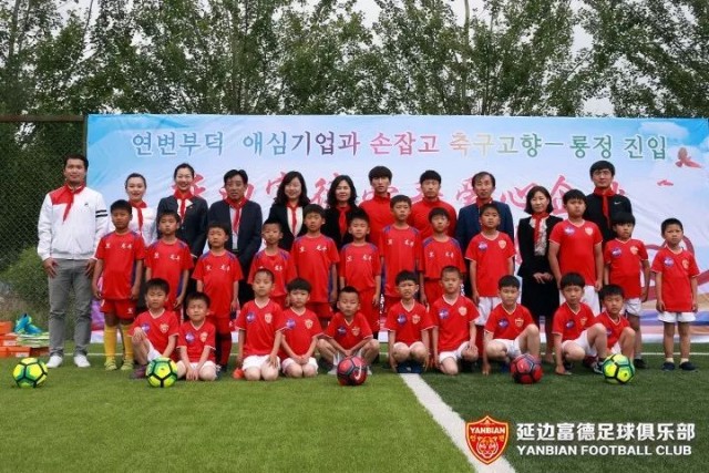 6月11日,延边富德足球俱乐部联合上海亮剑体育用品有限公司、中山威习日化科技有限公司、延边农村商业银行延江支行等社会企业“奉献爱心”活动在龙井市业余体校举行。