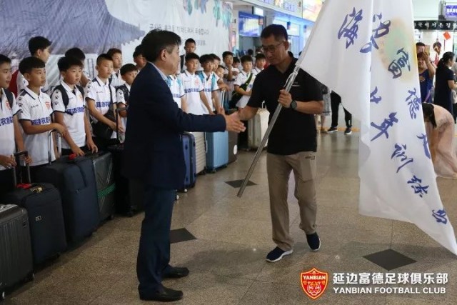 7月16日下午3点,延边富德足球俱乐部06年龄段梯队赴塞尔维亚集训在延吉机场举行简单出征仪式。本次塞尔维亚训练营由前国家队成员、延边州体育运动学校教练员张庆华领队。延边富德足球俱乐部总经理于长龙、副总李哲、延边州体育运动学校校长朴雪华到场为大家送行,并授予训练营旗帜。