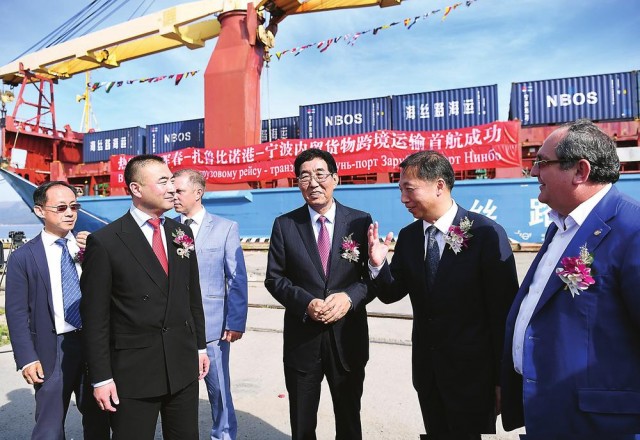俄罗斯当地时间9月14日15时48分,随着一声汽笛长鸣,珲春-扎鲁比诺港-宁波舟山港内贸货物跨境运输航线正式启动,这标志着吉林省和浙江省共同携手,开创了中俄跨境运输合作的新模式。省委书记巴音朝鲁出席开通式。