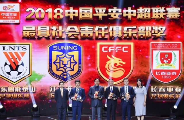 您的当前位置:智慧体育首页 > 看资讯 > 本地新闻 > 2018中超颁奖典礼落幕 长春亚泰获“最具社会责任俱乐部” “青训优秀俱乐部” “最佳球迷”三项大奖