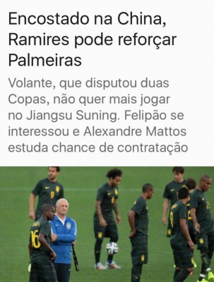 在巴西媒体“R7”的相关报道中提到,拉米雷斯可以成为帕尔梅拉斯的新援。这位参加了两届世界杯的球员不想再代表江苏苏宁参加比赛。斯科拉里对拉米雷斯非常感兴趣。(帕尔梅拉斯体育主管)亚历山大-马托斯在研究引进拉米雷斯的机会。斯科拉里喜欢拉米雷斯。帕尔梅拉斯对这位中场球员非常感兴趣。帕尔梅拉斯已经夺冠。帕尔梅拉斯赞助商Crefisa宣布他们将再花三年时间帮助俱乐部。这位31岁的球员在2016年从切尔西加盟江苏苏宁。这位多才多艺的球员连续参加了两届世界杯。今年以来,拉米雷斯想离开俱乐部,尽快有一份直到2019年年底的合同。