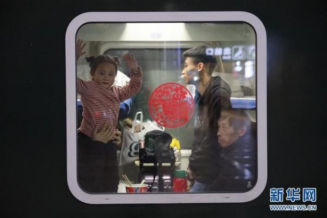 1月21日凌晨,在北京站,旅客在北京至南通的K4051次列车上等待发车。当日,2019年春运正式启动。新华社记者 邢广利 摄