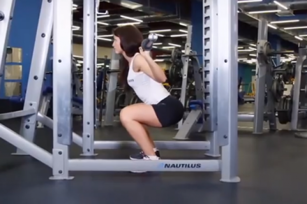深蹲怎么做,你一定曾在健身房中看到过这样的人,他将许多45磅的杠铃片放在横杠上,以便引起人们的注意,然后进行1/4动作的深蹲,简直是滑稽可笑,因为他们根本没有练到广阔的大腿下部,他们仍然很少或几乎没有发展腿部肌肉。深蹲时,至少要下蹲到大腿与地面平行,全过程的深蹲将带给你最佳的效果。