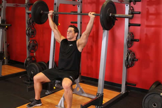 杠铃推肩动作上和哑铃推荐不一样,是需要两只手相握住横杠,并且记住两个手之间的距离,是与肩同宽的,然后把干零慢慢的提拉到自己的肩膀上面,并且手掌的掌心是向着上方的。接下来就是要把杠铃贴脸了,我们要先向上的进行推举,等到两边的手臂伸直之后在头顶的上方,接下来就可以按照原来的路线,慢慢的把杠铃放回原来的位置了,在训练过程中,要注意的要点就是在单推的过程中,上半身的身体最好不要往后仰,并且最好是能够在腰围上面系上一个重护腰皮带,因为我们在举杠铃的时候有可能会闪到腰,这样的话,以后更加有保险,另外,再推举的时候,最好是憋气进行的。