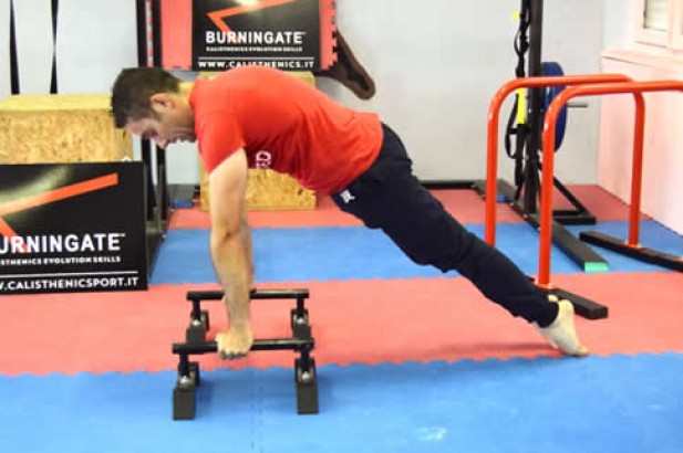 俄式挺身俯卧撑不是一般人能做到的,它需要极强的臂力、腕力、背部肌肉力量和协调力,可以说是一种全面的复合型力量训练方法,因为它基本上可以同时训练到胯部以上的全部肌肉。