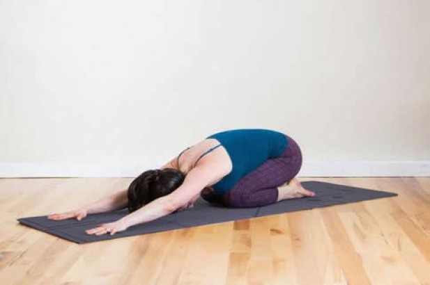 跪立,双腿分开,臀部坐向脚后跟,身体向前,试图用额头触地。