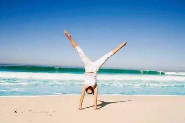 找一面墙,双手手掌平放在距离墙根约15一25厘米的地面上,双手与肩同宽。双膝曲,蹬起靠墙成倒立姿势。