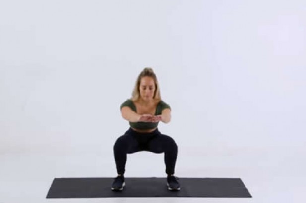 2. 身体慢慢往下蹲,直到大小腿的夹角小于90°,但不要贴紧放松,约70—80度即可;然后大腿前面用力站起来,直到站直。