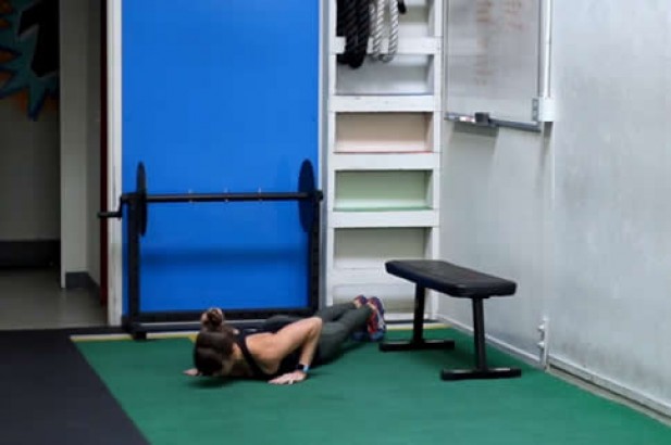 3. 俯卧撑锤式弯举。以掌心相对的姿势握住一对哑铃,身体呈俯卧撑起始姿势。保持这个姿势,右手向上弯举哑铃至肩部位置。下放哑铃至起始位置,左右手交替进行弯举。30~60秒一组,每组都要增加重量,但切不可使用爆发力。此动作对腹肌的训练效果也堪称一流。