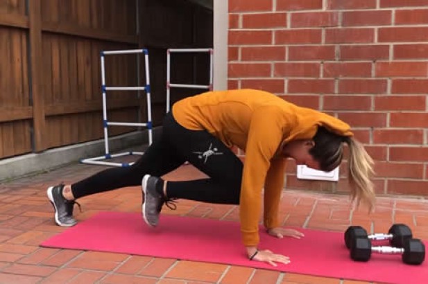 2. 动作操作的同时,不要改变你下背姿势,你要注意身体一直保持最自然的一直线,下背部不过度下凹或上凸,利用核心肌群,控制身体的稳定。不要上上下下的。