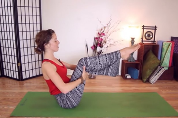 2. 拥抱肚脐以刺激核心力量,并将脚抬离地面。