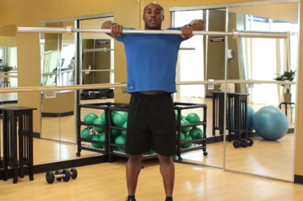 2. 起杠铃至下巴,注意整个过程手肘要比双手高。
