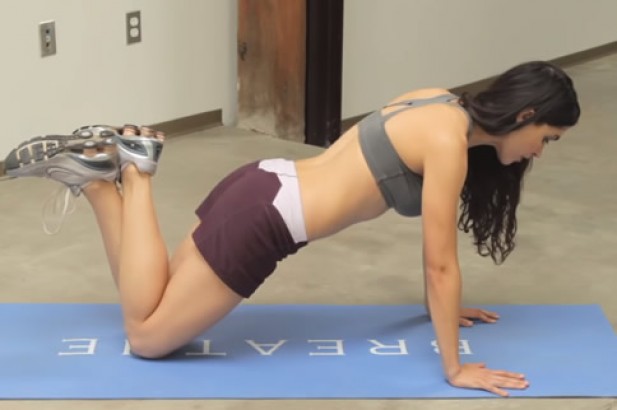 将身体的重心前移,使手臂承接大部分的重量,此时将膝盖后面的小腿以及脚部抬起来,这样慢慢弯曲手臂就可以开始跪姿俯卧撑。