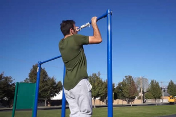 3、手臂的爆发力有了之后,再尝试直接向上拉,如果还不能成功的话,可以使用举哑铃的方式,增加手臂的肌肉,再做单杠就比较简单了。 注:要小心的作单杠避免手臂拉伤的情况出现。