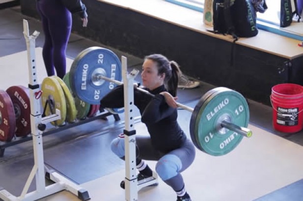 杠铃搁得较前,会增大阴力臂,增加躯干支撑与两臂固定杠铃的困难。