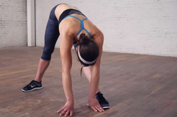 3.为加强拉伸效果,可将双手触地位置尽量前移。