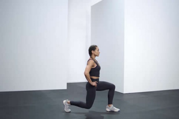 对于经常运动的人来讲应该是很熟悉的一个动作,不过很多训练者也许只知道这个动作对于臀部与腿部的训练效果,殊不知箭步蹲可以训练到的远远不止这两个肌肉群,胯部、腹部、腘绳肌肉群都是它可以触及到的训练肌群;对于初学者无需任何其他额外的负重就能进行,动作过程中要注意膝关节弯曲后永远不可以超过脚尖,这是做大部分腿部练习时的大忌。共需进行3组,每组8到12次(一侧完成8到12次后换另一侧,两侧各完成一次算完整的一组),每组间允许有30秒的休息时间。