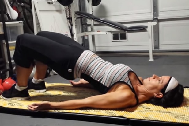 这个动作的目的是为了锻炼臀大肌和身体的核心稳定性。接着将其中一条腿往上抬,膝盖维持弯曲,直至髋部充分伸展。脚尖到顶端后停留2秒,再慢慢下降复原。每侧腿各完成三组,每组12次。