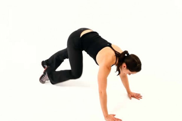 登山跑的准备姿势有些类似于俯卧撑,全身重量都在手掌和脚趾上面,为了保证运动效果,要求全身在同一条直线上,尤其是臀部,不能抬太高。然后踮起脚尖,双腿交叉做跑步状,这个时候,双臂要保持稳定,不要晃动。为了能够更好地做登山跑,建议在专业的训练垫上进行。