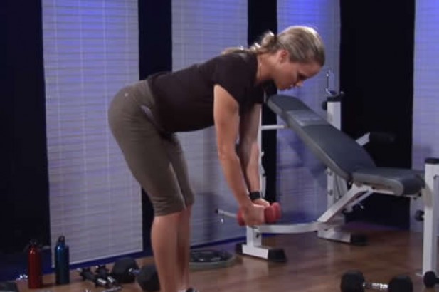 6. 哑铃返回时,手臂保持微曲,不要放松背部。