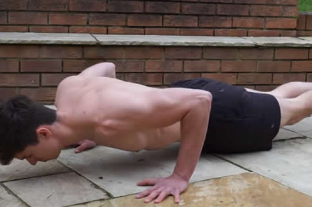 这个动作主要是锻炼胸大肌。在家中的客厅或是就餐区,找两个独凳左右各摆放一个,用两手作支撑,俯身在上就可以了,12个为一组,要做三组。记住在做俯卧撑时,要收腹挺胸,尽量拉伸胸部,使胸肌肉饱满有型。另外,这个动作还有校正驼背的作用。