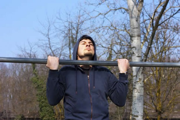引体向上动作能够锻炼我们的爆发力,因为街头训练动作一般都需要比较大的冲击力以及爆发力完成,那么就可以通过引体向上动作进行锻炼。一开始我们双手打开与肩同宽抓住单杠,并且双手保持自然放松的状态,此时双腿离开地面。动作开始,我们双手发力让身体能够向上,直到我们的下巴位置超过单杠,我们再放松身体,让身体自然向下垂放,重新开始动作。每次完成15个为一组,可以进行2~3组。