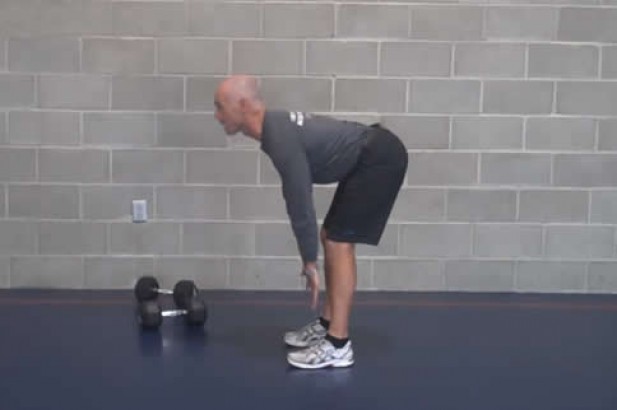 首先笔直站立,双脚打开同肩宽,膝关节伸直,腰部、背部放松,双手自然下垂;然后低头使下颌朝向胸部,慢慢弯腰,直到双手触摸到地面,保持姿势5秒,然后转向另一次,重复动作4到5个来回。如果身体柔韧度不够,双手无法碰到地面,那就弯腰到最低点,这个动作的目的是为了锻炼脊椎和腿筋的灵活度,不要为了碰到地面而弯曲膝盖,那样起不到拉伸腿筋的作用,也不要完全伸直膝盖,稍微弯曲一点点更能锻炼腿部肌肉。