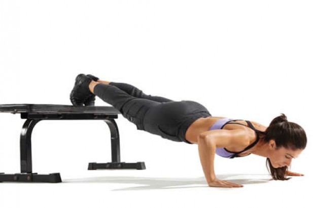 对于大部分女生来说,这个动作都是比较困难的,将自己的双脚放在高处的凳子上,身体和平常的俯卧撑一样做。但是女生们不妨选择平地的俯卧撑或采用膝盖跪地式的俯卧撑,等到提高自己的运动水平之后,再进行下斜俯卧撑。