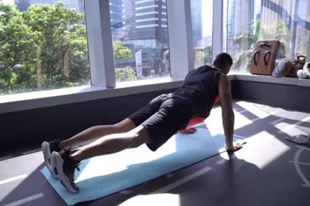 1.实心球俯卧撑--这个练习的目的是加强控制肩胛骨的肌肉干的核心力量与身体平衡能力。