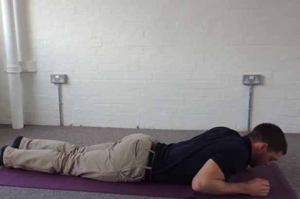 首先双腿伸直,趴在地上让我们的身体放松,腿部保持不动,使用双手抱住我们的头部向后仰,让我们身体形成一个感觉,像是飞鸟起飞的动作。一直坚持这个动作不动保持40秒,然后原地放松20秒后,再重新开始这个动作,一天可以完成三组。
