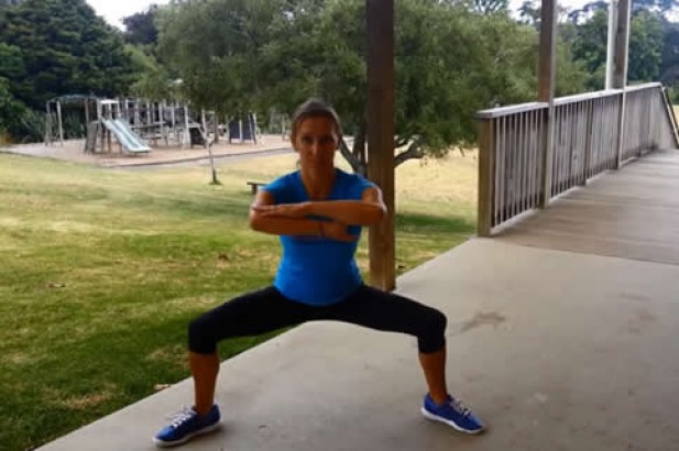 首先,双脚打开与肩膀同宽,膝盖微微弯曲,将重心放在后方臀部。下蹲时,膝盖不要超过脚尖,腹部收紧。