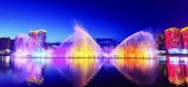 延吉市布尔哈通河的音乐喷泉为延吉夜景再添光彩,为市民和游客带来视觉上的享受和震撼。图为位于延吉大桥和延新桥之间的布尔哈通河上的音乐喷泉随着音乐的节奏舞出动人的“