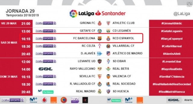 北京时间3月6日,西甲官方宣布了联赛第29轮比赛时间安排,备受中国球迷关注的加泰罗尼亚德比,将在北京时间3月30日23时15分打响,届时可以看到武磊与梅西、苏亚雷斯以及登贝莱等巨星同场竞技。