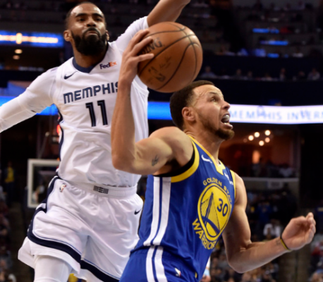 第四节开始后,杜兰特率先登场,并连续砍分稳住局势,库里上场后屡送妙传,先后帮助格林与考辛斯轻松得分,自己也有几次试投,但未能保持第三节的良好手感,均未命中。到了本节末段,库里造成杀伤走上罚球线,得到了本节的第一分,随后灰熊也逐渐放弃抵抗,库里打卡下班!