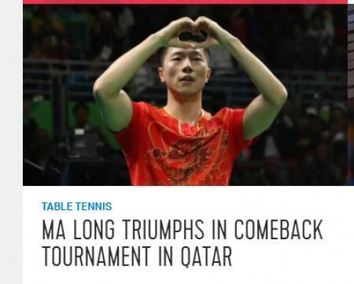 奥运官网首先报道称:“30岁的马龙时隔7个月重返国际赛场,他在克服了伤病的困扰后,赢得了国际乒联巡回赛白金赛事卡塔尔公开赛男单冠军。马龙现在男单最新世界排名第12位,他在多哈的决赛中4-2逆转击败了世界排名第三的队友林高远。”