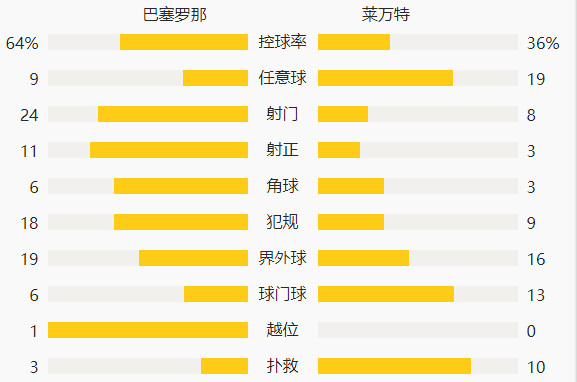 64分钟莫拉莱斯直传,马约拉尔禁区右侧右脚单刀捅射,特尔施特根提前出击将球扑出。罗奇纳右侧角球直接射门,特尔施特根双拳将球击出,莱万特用巴尔迪换下武科切维奇。68分钟拉基蒂奇头球解围失误,莫拉莱斯点球点左侧右脚单刀推射踢飞。