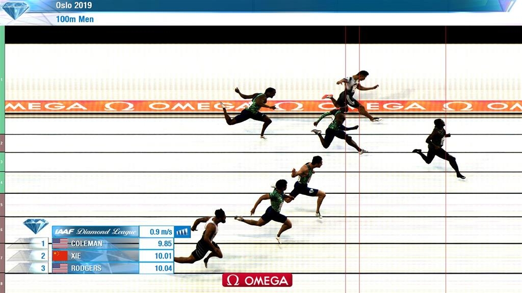 科尔曼在冲刺的时候已经处于明显的领先,他的速度有些减慢,科尔曼第一个通过终点,成绩为9秒85。谢震业以10秒01获得第二,美国34岁老将迈克-罗杰斯以10秒04获得季军。科尔曼的9秒85目前排名本赛季世界第一,谢震业的10秒01在创造赛季个人最好成绩的同时达到了明年东京奥运会的参赛标准,并排名亚洲赛季第三。
