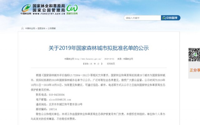 21日,国家林业和草原局网站发布消息,国家林业和草原局拟批准28个城市为国家森林城市,并将拟批准的2019年国家森林城市名单予以公示。公示时间为2019年10月21日—2019年10月25日。吉林省敦化市榜上有名!