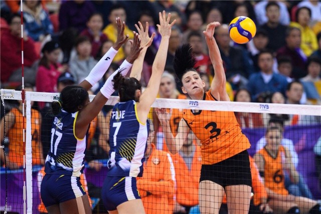 科内利亚诺第三局通过埃格努后二调整攻到4-2,伊萨奇巴希凭借金软景变扣为吊但遭希尔后三至5-8,博什科维奇跳发轮迫近9-10但拦防不住埃格努。科内利亚诺依靠德克勒伊夫封堵和埃格努重扣到13-11,伊萨奇巴希休战后无法拦截埃格努反轮强攻,纳塔利娅反轮重扣再遭希尔封堵至13-18。金软景进攻失误被巴拉丁替换下场,科内利亚诺利用巴拉丁打标志杆失误,德克勒伊夫短平快以25-19反超局分至2-1。
