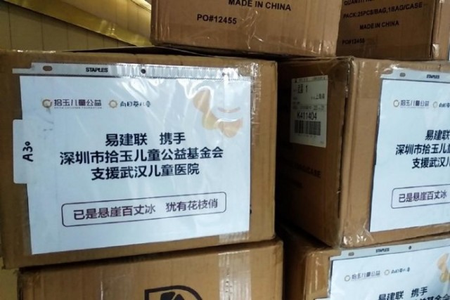 “由中国篮球运动员@易建联 先生出资捐赠的11250件防护服,昨日下午顺利抵达武汉。深圳市拾玉儿童公益基金会作为本次公益捐赠的执行方,全程协调本次捐赠事宜,对接各方资源,以最快的速度为奋战在一线的医护人员安全防护和救治生命保驾护航。”该基金会在社交媒体上写道。