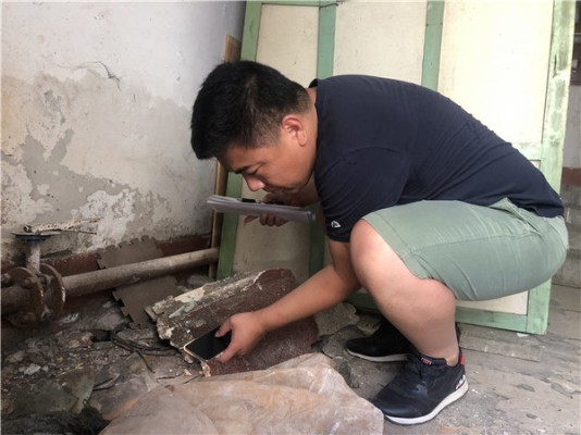 走访完改造工程,南军又按照登记簿上的居民诉求,来到园虹委22组3单元。“有居民反映1楼的地沟里有流水声,我得亲自看看才能放心。”南军蹲下身,一只手移开障碍物,一只手用手机照亮,仔细查看。“这应该是自来水管道破损,我得回去和自来水公司联系,再决定维修方案。”几个月的工作,已经让南军成了半个维修专家,他笑着说这也是做社区工作的一种收获。